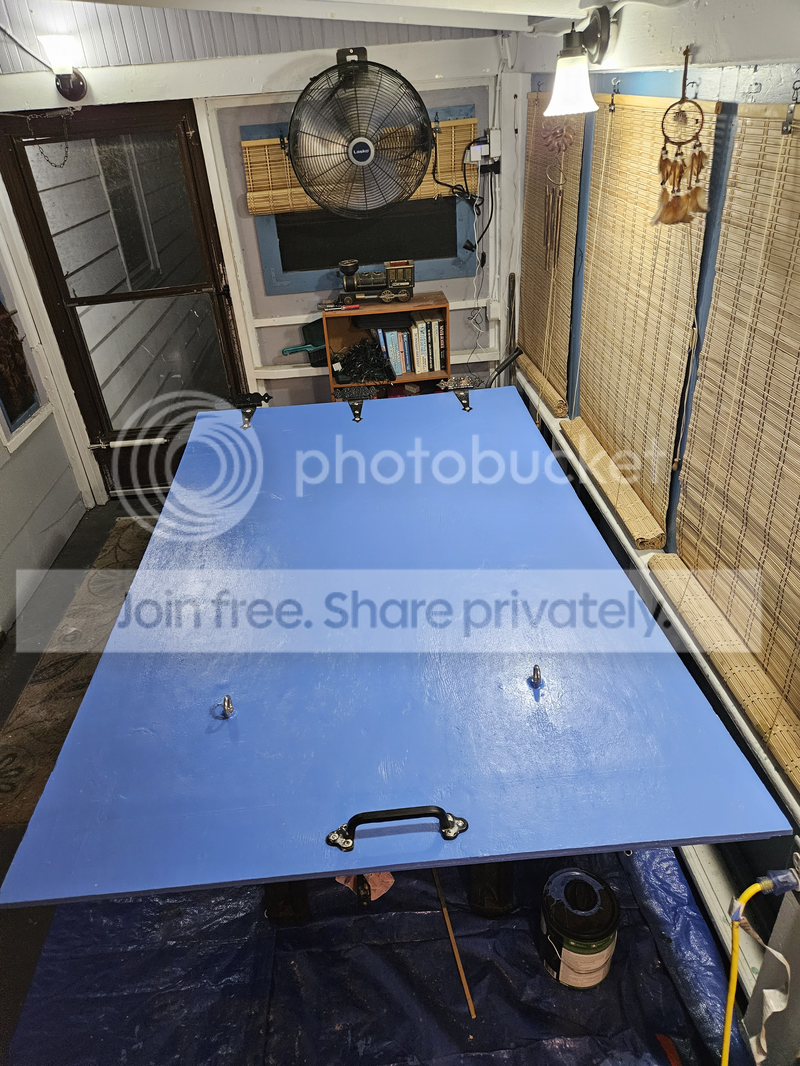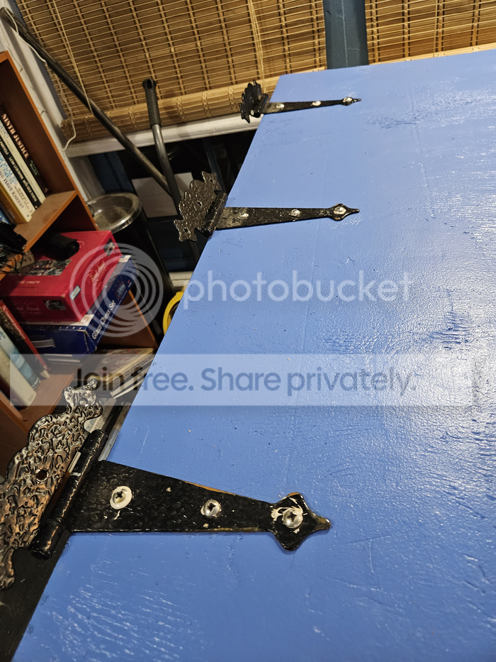 So, here is HD2.0 tonight... Boat House blue, with it's victorian hinges & handle... and it's double eye bolts.