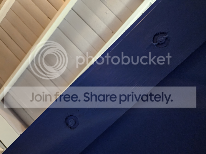 You can't even see the washers under the shoulders of the eye bolts, because there's so much teflon paste blobbed on... which is now covered with paint.