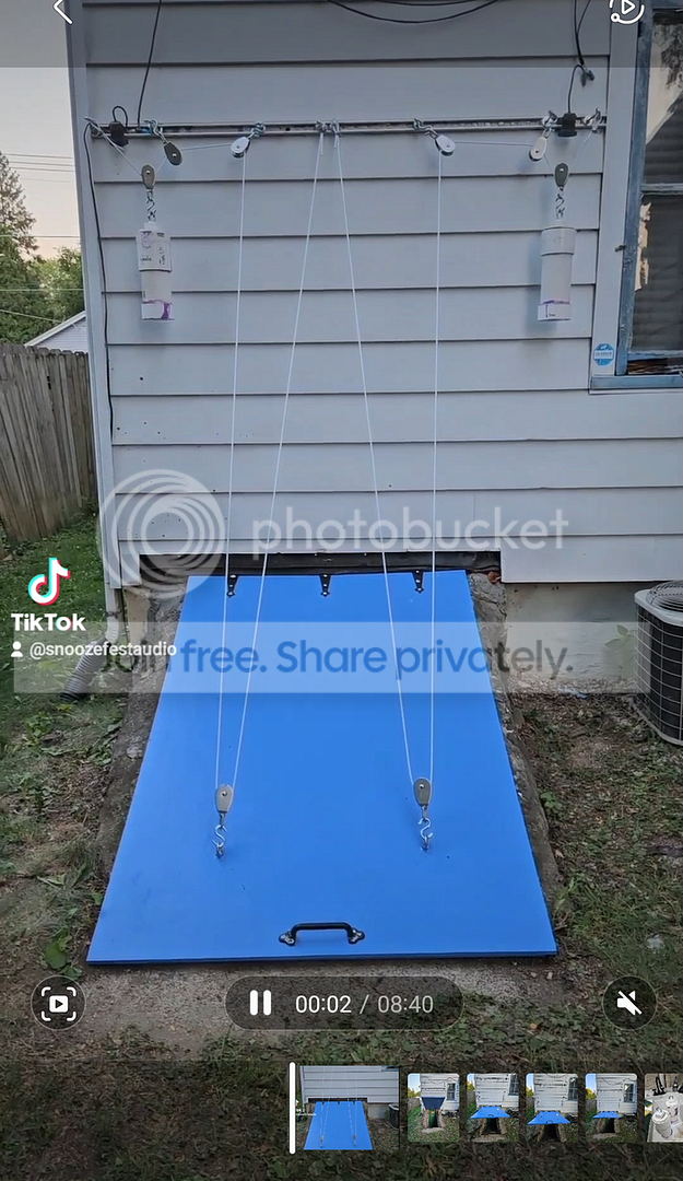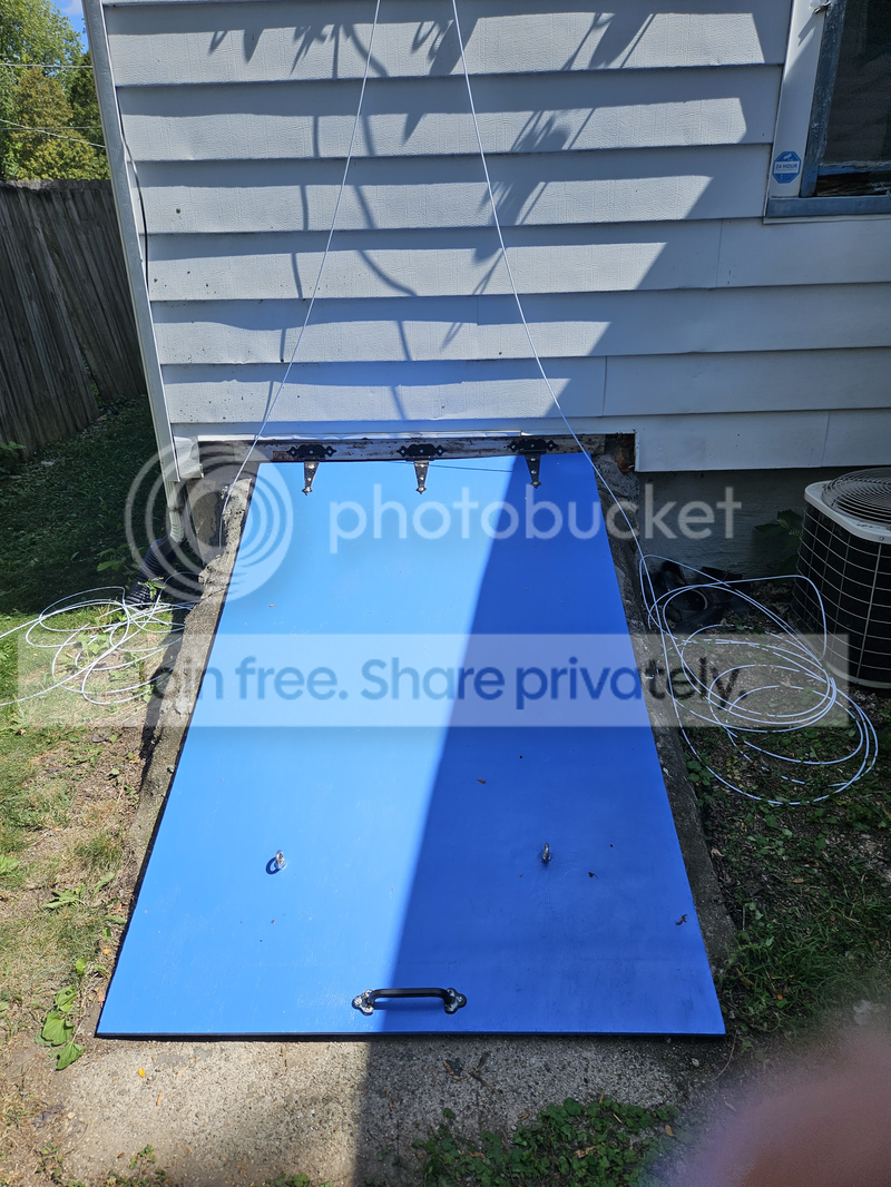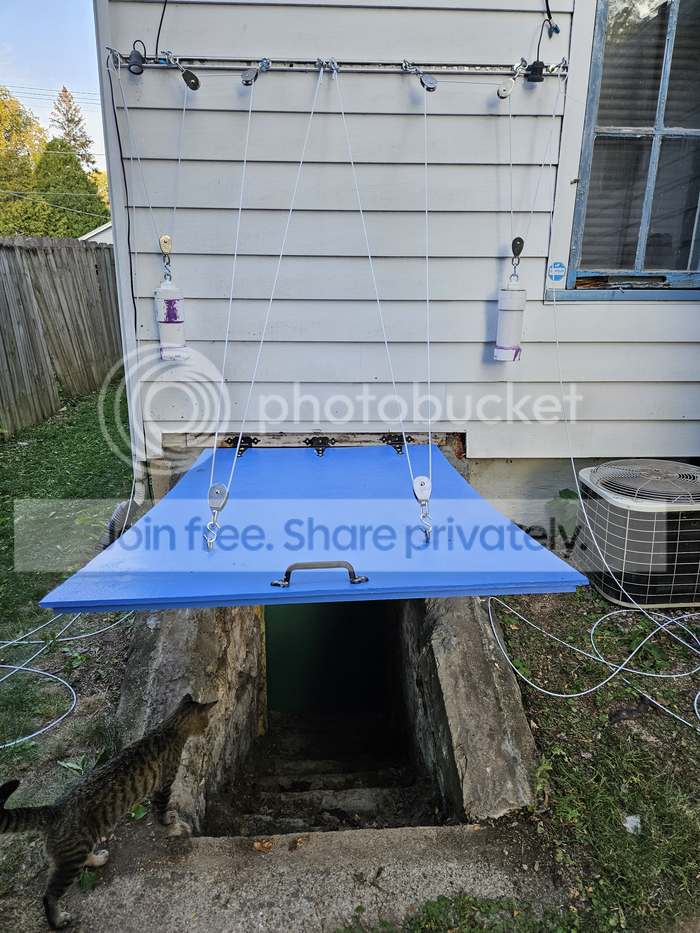 The basement hatch area was in shade by that point, but it was still 90F, and I did sweat bullets the entire time... as I strung up the rigging, hung the counterweights... tested it out... and, when I found that it worked, replaced the rubber flashing.