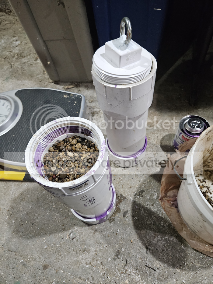 Then I dumped that 10LBS of gravel into a 4" PVC pipe with an endcap dryfit at the bottom... and this gave me an idea how short to cut the pipe.