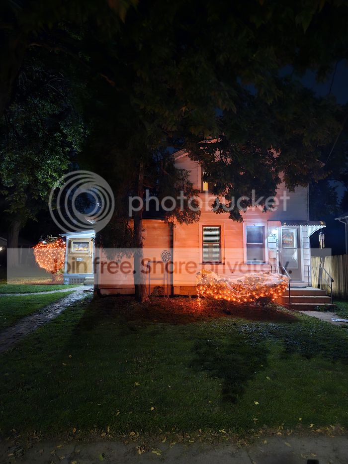 I've been seeing more and more halloween lights over the years, but so far, I have not seen anybody do lights and webbing like this together.