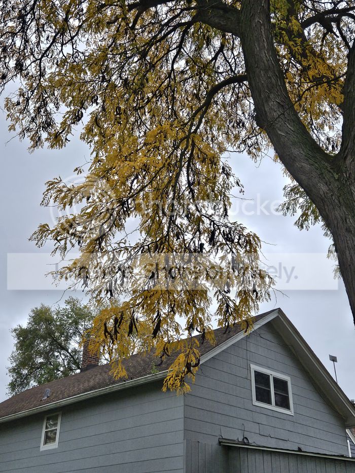 The leaves are golder than they were yesterday, and as we can see in the photo, there's a bumper crop of pods waiting to drop in November.