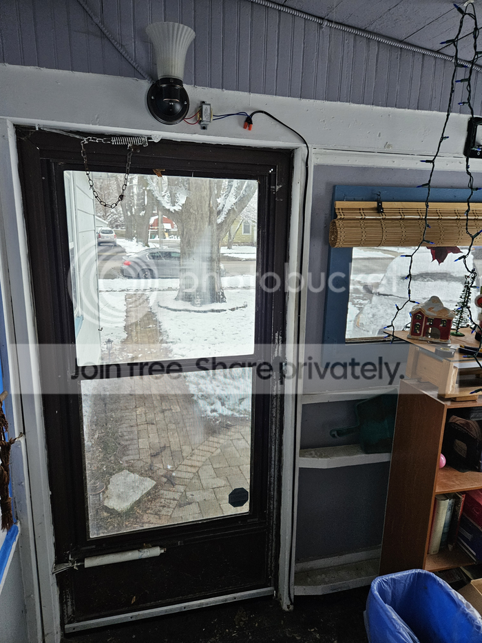I brought proper electric to the porch in 2020, which is when I installed the bulkhead light outside above that door, on a photo sensor.