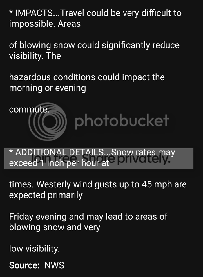 Basically, a heinous snow-pocalypse of high winds and heavy snow was coming, and would last from 3AM Friday morning... all the way through to noon on Saturday!