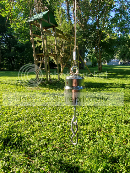 You'll notice this is not my wood weight made from a table lamp stand. I did use the wood weight to get it over... but later on in the process I realized it wasn't heavy enough, so it was replaced with what you see... which is a huge, 1 1/2" socket I happened to have buried in a forgotten tool box.