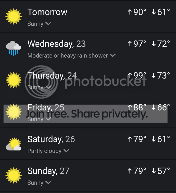 Wednesday & Thursday are still high 90sF, but the triple digit prediction is gone.