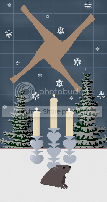 I decided it was better to have the three candles more centered, and put the groundhog in the foreground center, low down.