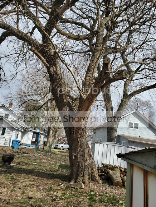 This is the other mulberry... referred to last fall as the mother mulberry. As you can see from that limb in the foreground with no bark on it... this thing is half dead.