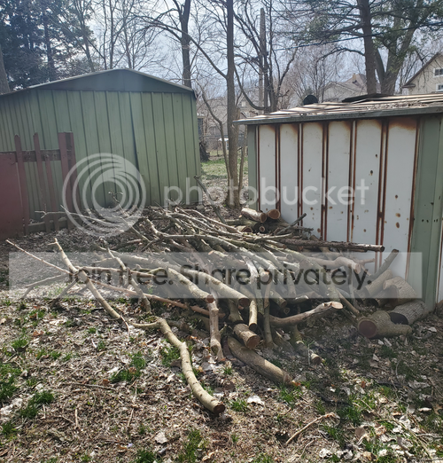 It began when I cut down some saplings growing by the basement hatch door in 2019, but grew as I cut down more junk wood trees around the yard, and then exploded in size after I broke down a ton of branches from the mulberry.