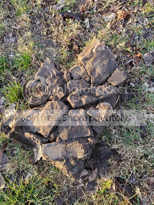 By the way, I flipped over a hunk of the barbecue concrete and you can see here that my grandfather used not just coal klinkers (one in the upper left corner of this hunk) but also limestone and broken bricks.