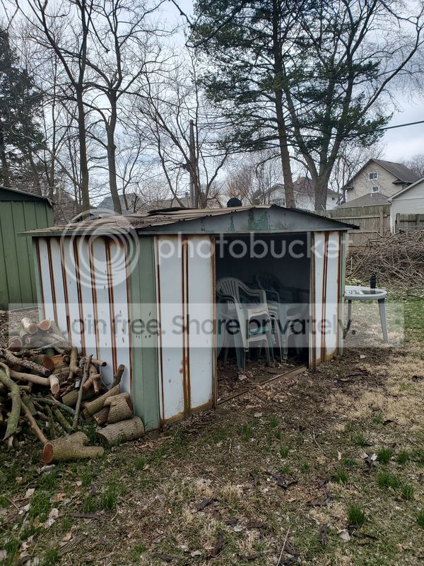 It has been a good place to hide the plastic lawn furniture, as well as a dumpster for scrap lumber, and a place to stack firewood against... but at the price of being a hideous eyesore.