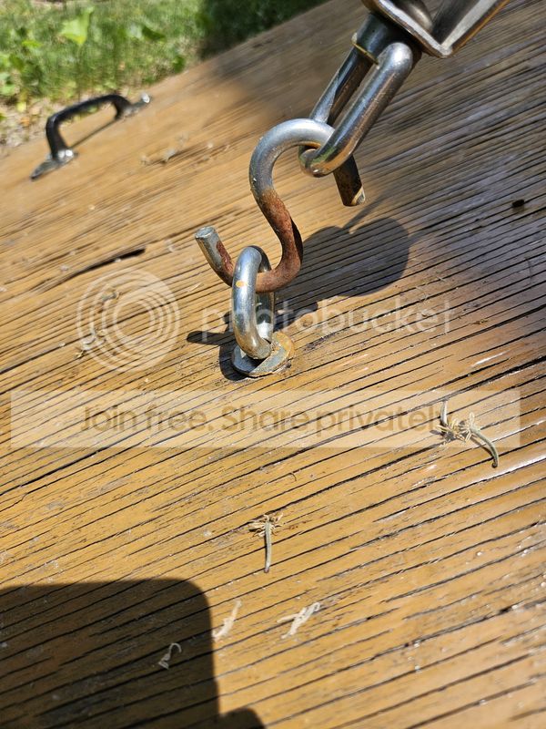 I didn't think about the fact that this eye bolt would be literally leading rain water down inside the wood!