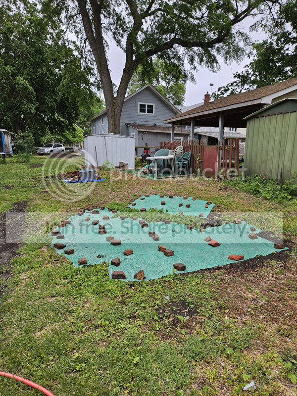 When that was done, I made a quick run for beer. And when I got back, I went ahead and put down grass seed mat, finally, on the old shed site... now that it's getting watered.