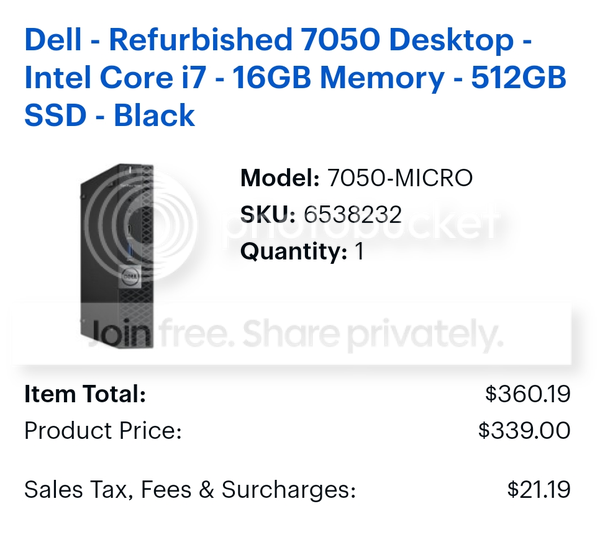 So I settled on a refurbished Dell 7050, for $360.00, mainly because it has an, Intel i7 Core... rather than the i5 that the cheeper refurbs all had.