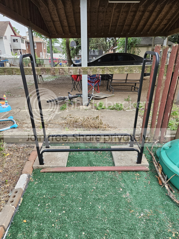 I left the cover in the shed, because it'll act like a wind sail until there's actual wood in the rack.