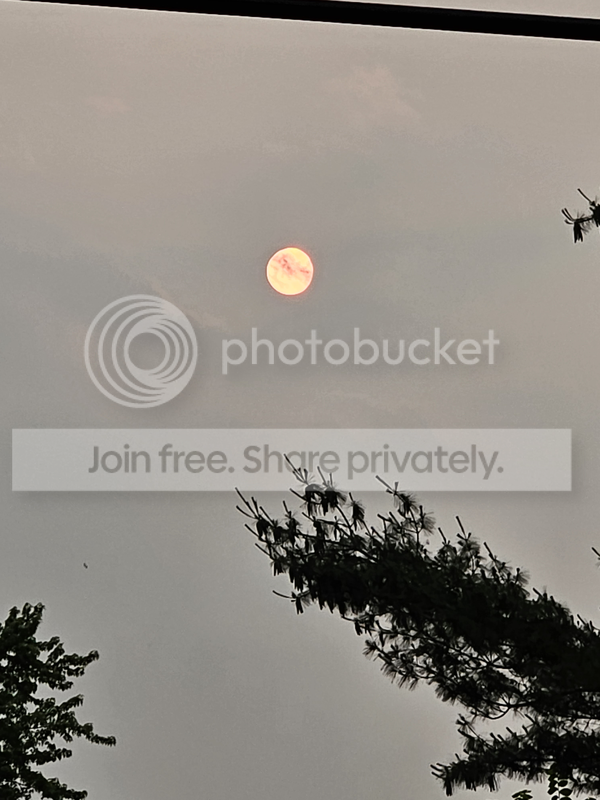 I dunno if those Canada wildfires had anything to do with it, but the sun was pretty orange, behind the clouds that were moving in.