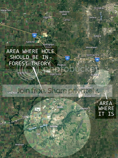 According to the forest hypothesis, the hole should exist around Plano and Yorkville, because this is the first, forest-defended area that any system will meet.
