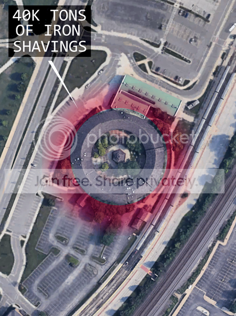 We're talking forty thousand tons of finely particulated iron, steel, and nickel powder, crunched down into the soil in a small area, and that's gotta have a unique electrical signature... which I'll get to below.